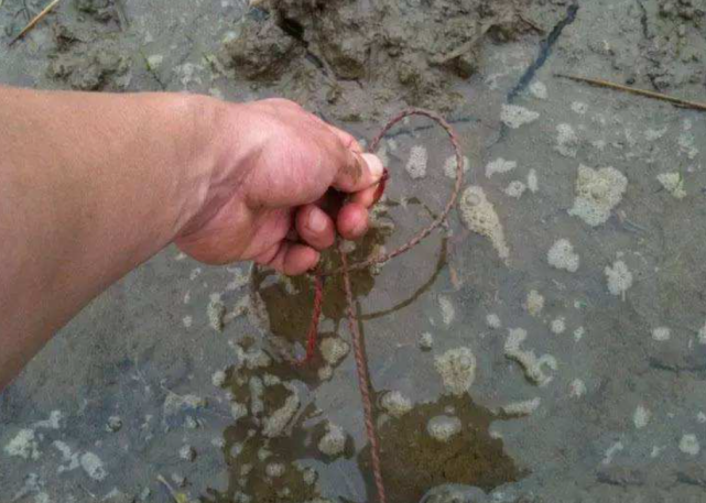 黄鳝全身滑溜溜的,没有鳞片且黏液多,徒手很难抓,发现黄鳝后,一般用钳子夹住黄鳝的头,以防其逃脱。