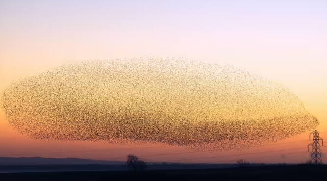 完成这一壮举的是欧洲椋鸟,它们的这种集体协作行为有一个专有名词——“murmuration”,可以翻译成“椋鸟群飞”,以庞大的种群数量和独特的空中协作行为而闻名。