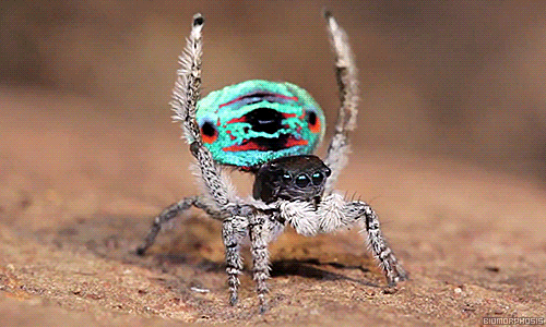 孔雀蜘蛛以艳丽的屁股和迷人的求爱舞蹈而闻名。