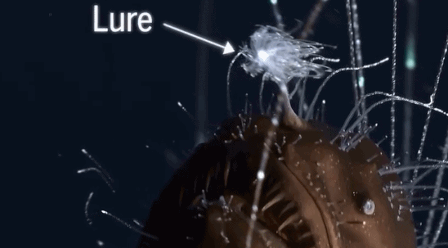 众所周知,很多生物都是具有趋光性的,当它们看到这种光亮后,会主动靠近,此时鮟鱇就会张开嘴巴,静静等待食物自己到嘴巴里来。