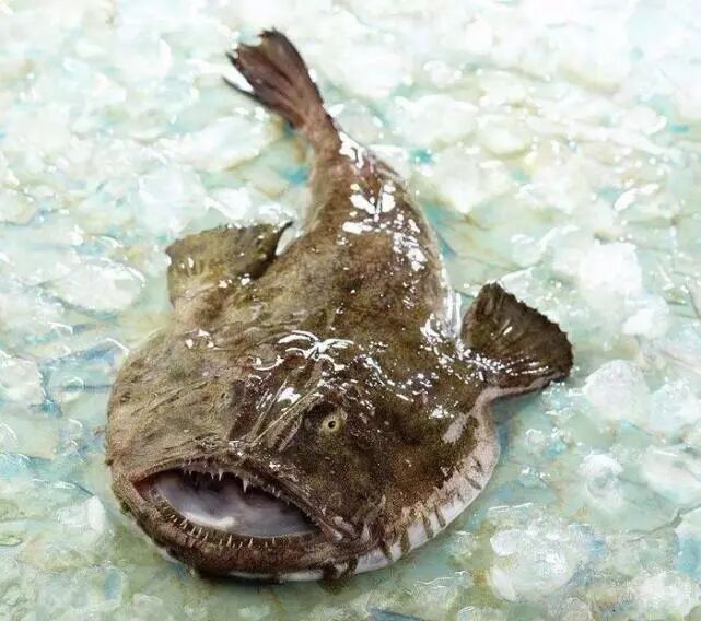 鮟鱇有很多名称,哈蟆鱼、琵琶鱼和结巴鱼等等,生活在深海中,长相一言难尽,也有丑鱼和老头鱼的外号。