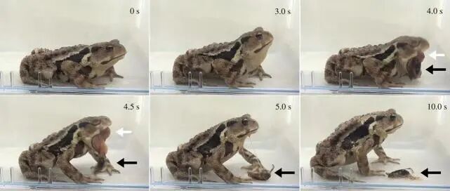 据统计,吃了甲虫的蟾蜍,有43%会在12-107分钟后将甲虫吐出来,而且被吐出来的甲虫,超过93%的甲虫在实验结束后至少存活了两周。