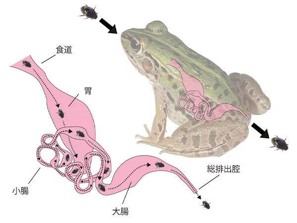 日本有一种小型水生昆虫,被青蛙吞下后,经过自己不懈的努力,90%的小虫子都能活着出来,但这种虫子不是从嘴巴出来的,而是从青蛙的泄殖腔。