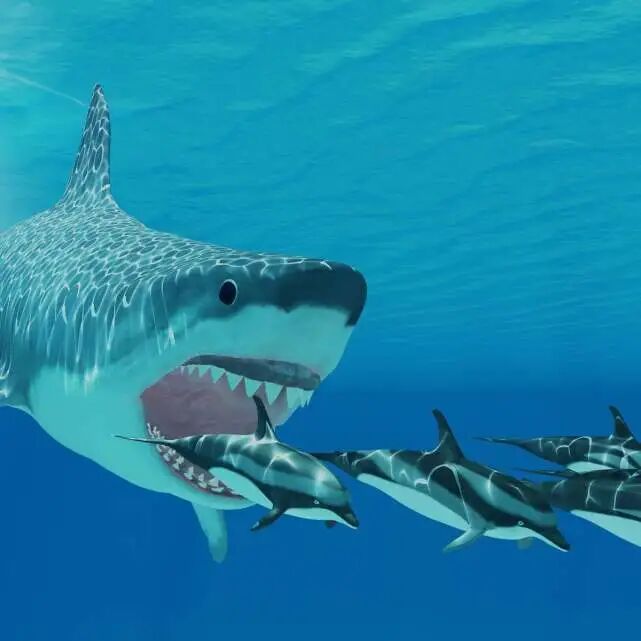 巨齿鲨有着巨大的锯齿状牙齿,如此大的体型,显然需要更多食物,因此猎物也会比较大,很可能是鲸鱼和其他大型鱼类,也可能是其他鲨鱼,小到海豚,大到座头鲸。