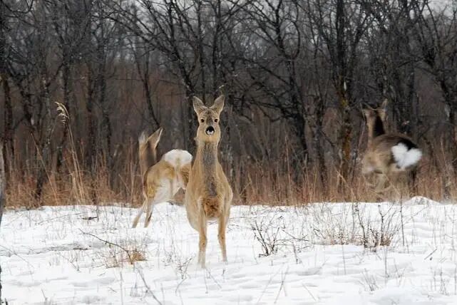 在野外狍子三五成群,只要大叫一声,狍子不会马上跑走,反而会回头,呆呆地望着你,如果你打倒了一只,那么其他的会在不远的地方观察你,有的胆子比较大,还会靠近来看。