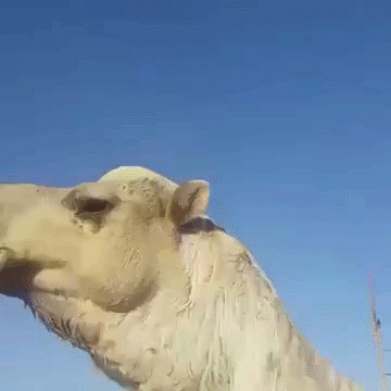 在呼气的时候,雄性骆驼会封闭鼻孔,然后让气体进入咽部,让肉球鼓起来伸出嘴巴,不用的时候,也能缩回去。