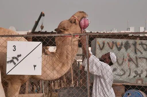一开始很多人认为这是骆驼的舌头,但事实上并不是,这是雄性单峰驼咽部的一种特殊结构,它的上腭比较软,可以充气产生一个粉红色的气囊,也就是我们看到的粉红色肉球,在阿拉伯语中被称为“doula”。