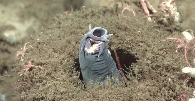 盲鳗没有传统的下颚,但它们有一排一排像梳子一样的牙齿,能将肉从猎物身上刮下来。