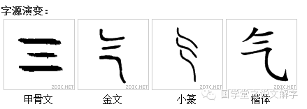 繁体的“气”字下面也有一个“米”字,“米”字就是一种物质,一种精微的物质,这说明“气”也是一种精微物质。“气”字在甲骨文里面,实际上就写成三横,分别代表云气、雾气、露气,也有一种说法是:“一”代表混沌初始,“二”代表天地。在“二”之间加一横指事符号,代表天地之间的汽流。看得见但又不是很清楚的一种状态,叫气态。后来“气”渐渐地越来越抽象,慢慢变成了一种无形的东西。所以“气”实际上是介于“精”和“神”之间的一个状态,是介于有形和无形之间的东西。