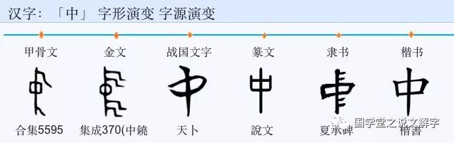 《说文解字》:中,事物的内部。字形采用“口”作字根。中间的一竖丨,表示上下贯通。中庸之道里说到:不偏不倚为中,也是正直的一个意思!立杆侧影,确立地心。