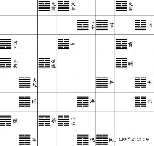 3.正东方向互重叠出现的分别是噬嗑和丰卦,而噬嗑和丰的综卦分别是贲和旅,错卦分别是井和涣,而井和涣的综卦是困和节,然后就再也综错不出其他的卦来。