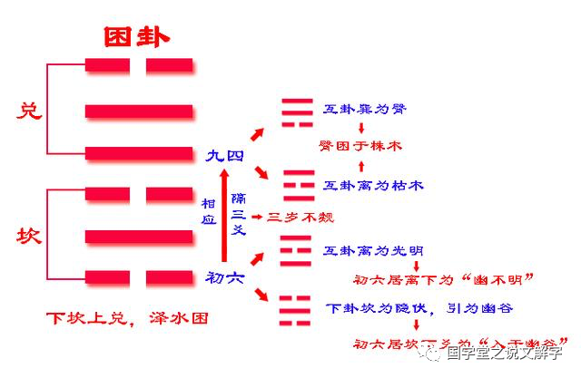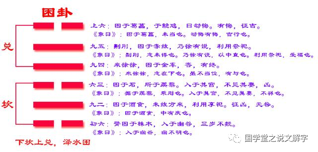 在《易经》中所有与危险有关的都会提到坎卦,但其他卦的危险似乎都比较容易避开,而困卦却不同,因为三个阳爻都被压制,几乎是不容许活下去了。