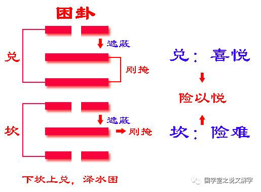 泽水困,上面是沼泽,水到了沼泽底下,代表水流光了,无水当然是困。
