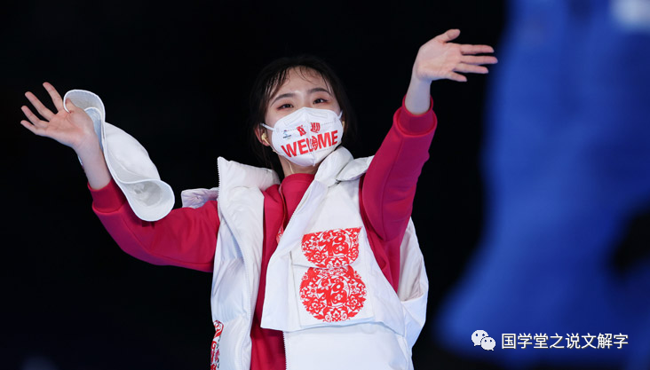 “欢迎”口罩。根据《开幕式媒体指南》,入场式标兵的服装,采用了河北蔚县的民间剪纸图案,凸显中国人过年的喜庆吉祥。标兵所佩戴的口罩上,以中英双语印出“欢迎”字样。