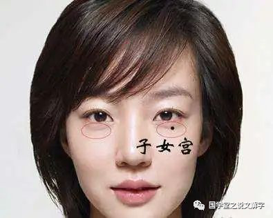 子女宫的位置在每个人的两眼之下,下眼皮隆起的地方,也叫“泪堂”。