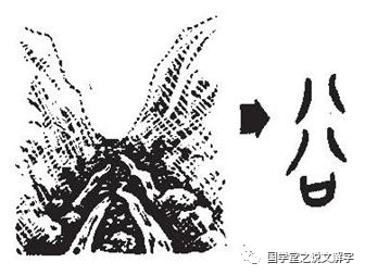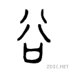 本义:两山之间的狭长地带或流水道。这是一个会意字,上面的部分像水形而不全,下面像谷口。《说文解字》:“泉出通川为谷。从水半见,出于口。”而本义为庄稼和粮食总称的字是“穀”。《说文解字》:“穀,续也,百穀之总名。” “穀”和“谷”原为不同的字,后合并为“谷”。