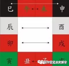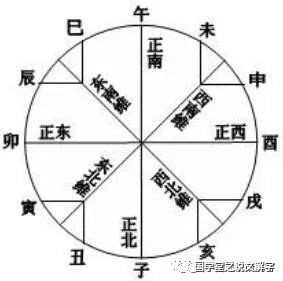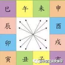 请注意这个方位与现代的方位完全相反,这里的每一个地支都会对应一个方位。当然有的方位是两个地支与之相对应。