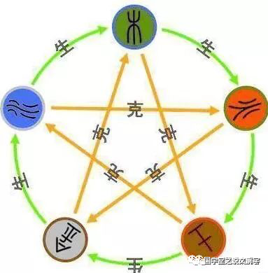 把木头点着了,这就是木生火.火烧完了变成灰就是火生土...用斧子把木头劈开就是金克木,用火把金属熔花了就是火克金等等.五行的相生相克可以用下面的图来说明