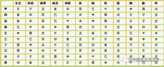 这个图以甲为例,可以说是他的十二个人生阶段,象一个小孩,生了,先要沐浴,然后穿上衣服,然后长大,就旺了成年了。然后变老 “衰”了,然后得病死亡,等