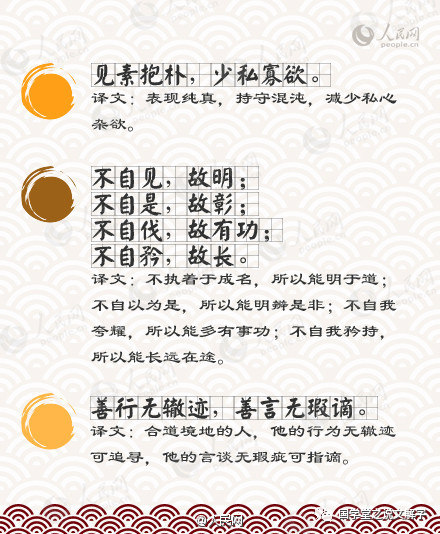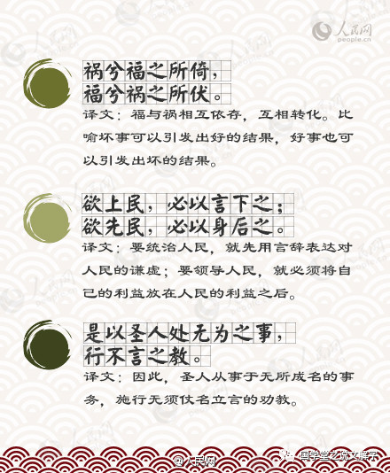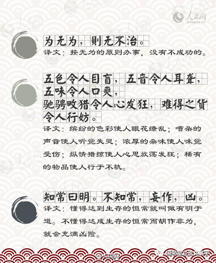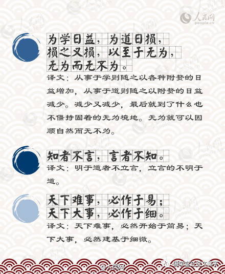 值得收藏的《道德经》大智慧。①天下难事,必作于易;天下大事,必作于细。②大方无隅,大器晚成,大音希声,大象无形。③祸兮福之所倚,福兮祸之所伏。林语堂曾认为,任何一个翻阅《道德经》的人最初一定会大笑;然后笑他自己竟然会这样笑;最后会觉得很需要这种学说。