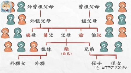 2、祖父母对自己的祖父母称“祖父”、“祖母”。男的自称“孙”或“孙儿”;女的自称“孙女”。称别人的祖父、祖母,谓“令祖父”和“令祖母”;对别人称自己的祖父、祖母谓“家大父”和“家大母”。对自己已故的祖父、祖母,称“先大父”和“先大母”,书面表达一般是称为“王考”和“王妣”。