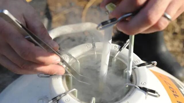 他们人工提取种牛的遗传信息,每次提取大约能得到6毫升液体,然后分成500-600小份封装在液氮容器中,每小份的批发价在250-350卢比之间(是普通种牛的10倍),最后由专门的贸易商收走并分发往全国。