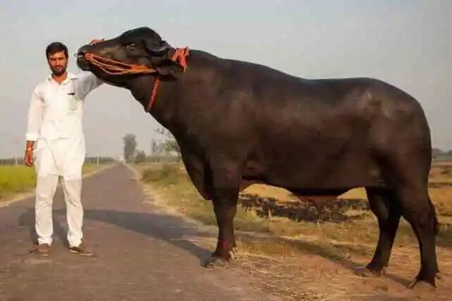 在印度所有优质的水牛品种中,站在金字塔最顶端的是摩拉水牛,这种牛角严重弯曲的水牛无论是肉质,还是产奶能力都是首屈一指。