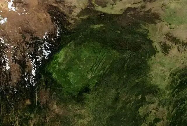 众所周知,在自然界中有两种力量可以创造这种圆形的凹陷区域,一个是火山喷发后的土地内陷,一个陨石的撞击。