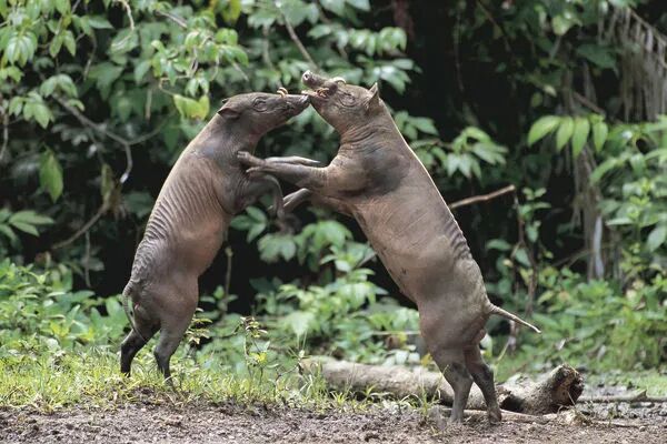鹿豚打架像笨拙拳击手,没獠牙什么事