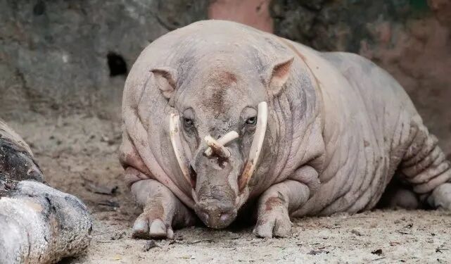 西里伯斯鹿豚上犬齿非常奇怪,它并不是和普通牙齿一样朝下生长,而是会朝上生长,最终它会戳破上颚而出。