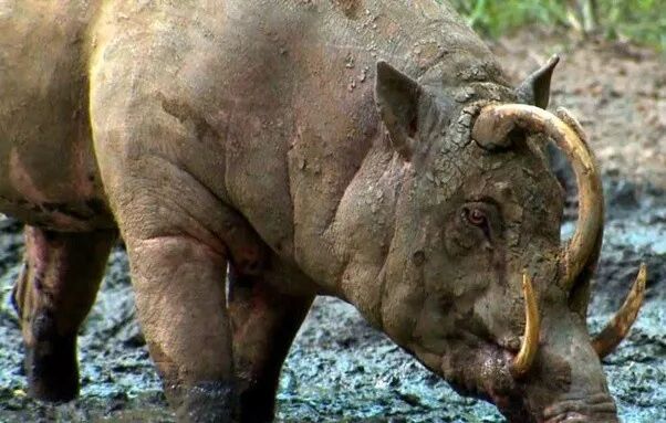 在印度尼西亚的不同岛屿上生活着四种不同的鹿豚,能够用獠牙杀害自己的只有一种——西里伯斯鹿豚。