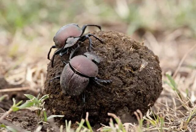 在这里要提一下,虽然屎壳郎可以快速清理粪便,但它们可不是把粪便都给吃光了哦,只是将其运送到“地下苗圃”而已,自己吃的部分很少。