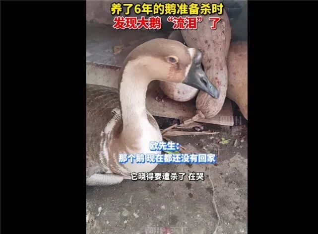有趣的是,当听到主人说不杀了时,大鹅又好像听懂了一样应了一声并甩了一下头,眼泪也飞溅了出去。