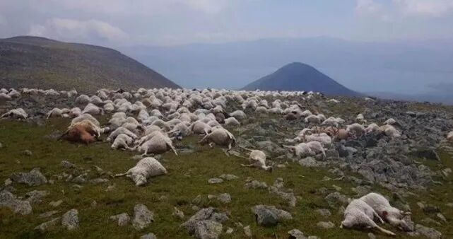 近日,格鲁吉亚发生一件离奇的事件,550只正在放牧吃草的羊被雷电击中,并且集体暴毙,而且牧羊人也被雷击中晕了过去。