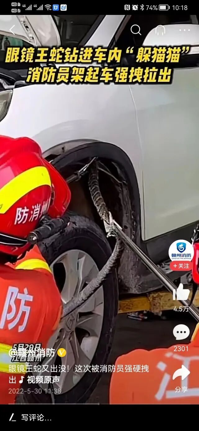 无独有偶,前几天江西赣州一家4S店处理了一辆“特殊”的车,这辆车子的引擎盖下面竟然有一条眼镜王蛇,连车主都不知道这蛇是什么时候溜进去的。