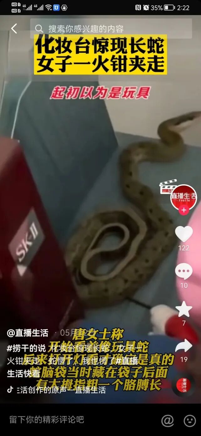 前些日子,安徽一女子睡觉醒来发现自己房间的梳妆台上竟躺着有一条蛇,起初她还以为只是一个玩具,但定睛一看这家伙竟然会动。