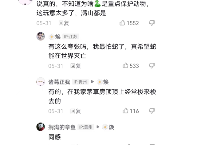虽然,两个事件发生的时间和地点都不太相同,但是网友的评论有一些相似之处,那就是很多人表示讨厌蛇,同时也不能理解蛇如此危险,为什么还要保护它们。