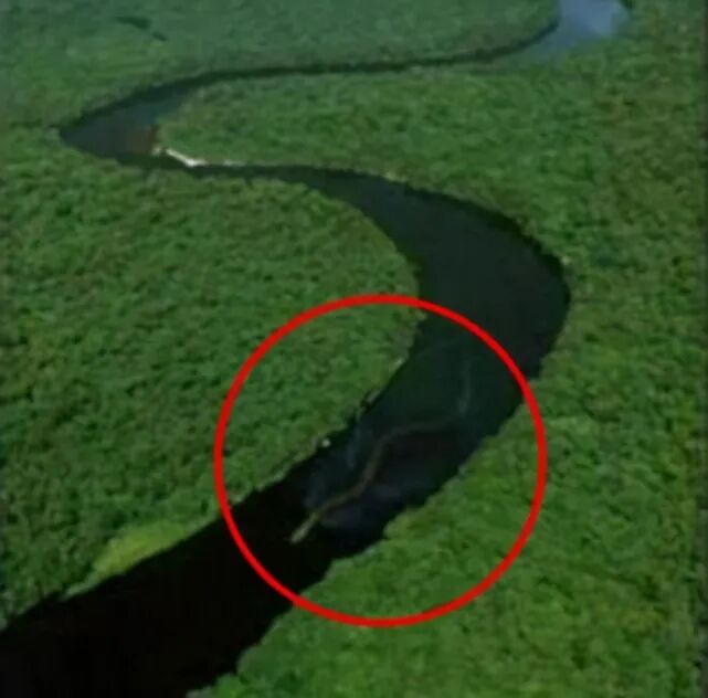 马来西亚河流中拍到的巨蟒照片,根据照片里巨蟒和河流边树木的比例来看,真实中的巨蟒应该有300米左右,而这样的尺寸,在现实生活中是不可能存在的。