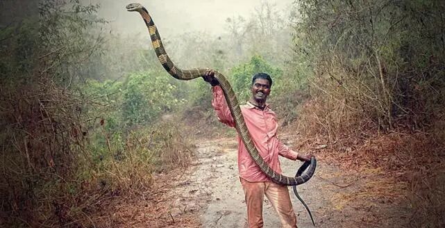 据说,要控制这条蛇,得出动8-10个成年男子。