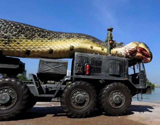 据资料称,2002年,在印尼抓获了一条巨蟒,体长14.85米,体重447公斤,是近百年来发现的最大最长的蛇,打破了当时的吉尼斯纪录。