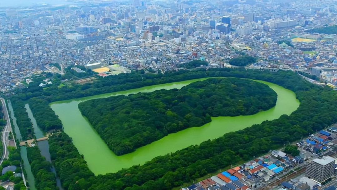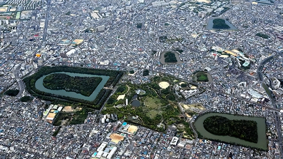 而这三个中,最大的那个,就是日本的仁德天皇陵,这个总占地面积,达到了惊人的46.4万平方米的皇陵,总面积接近秦始皇兵马俑占地面积的两倍,而且这座皇陵呢,非常的有意思。