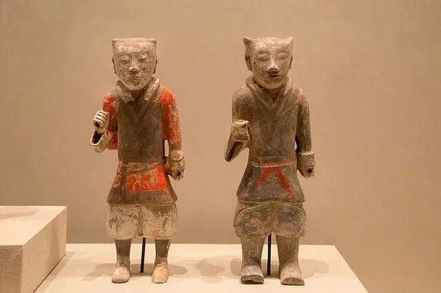 西汉陶俑没有这么中规中矩,于秦俑究竟有何创新之处,主要在于秦俑更侧重“塑”,而汉俑更注重“绘”不再强调衣纹突起,淡化尺度的概念,妙用线体关系,跟随泥的流动性去着重塑造人物的平面装饰感。