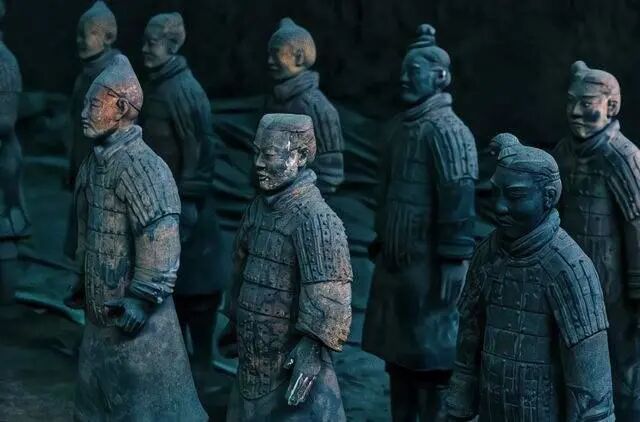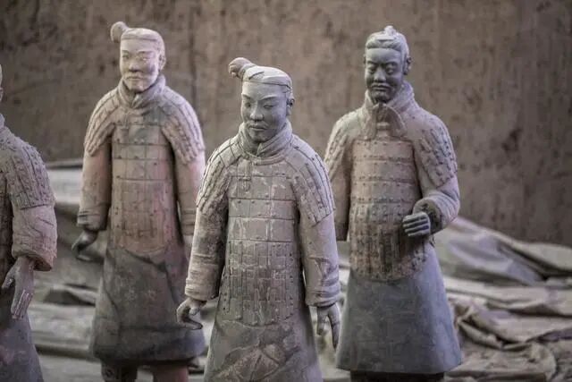 (1)六股宽辫扁髻:六股宽辫扁髻,造型非常独特罕见,头发前面为中分样式,将头发向头的左后方、右后方梳拢于脑后后,把头发分成六股并辫成六股长方形的宽辫,然后反贴于脑后。大多数非常扁平呈长方形状,但也不难发现一些略有不同的其他形状的扁髻:有一些上窄下宽略呈梯形,有的非常的紧贴头皮非常扁平,有的发髻相对圆鼓,还有的扁髻略成方形且相对较厚。这些形状的差异,据推测,应该与每个士兵头发的发量、长短、头型及个人的绾结手法、个人爱好不同所致,从中也能体会到兵马俑制作者的精细之处。