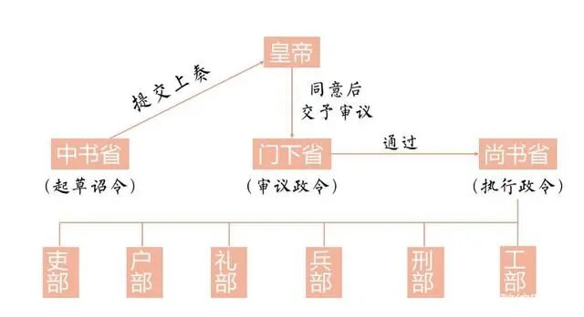 隋唐皇帝改革、完善三省六部制,把相权分割成决策、审核、执行三部分。分管三省的宰相中书令、尚书令、侍中各自掌管一部分,职权范围变小,实际权势减弱。