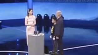 这时候台下的观众七嘴八舌地议论了起来,主持人听闻大爷所说也是非常好奇,于是就让大爷把宝贝给拿出来,但此时的大爷却说道:“这宝贝的来历我一个人可说不清楚,于是镜头一转,一位小朋友就出现在了鉴宝台上。