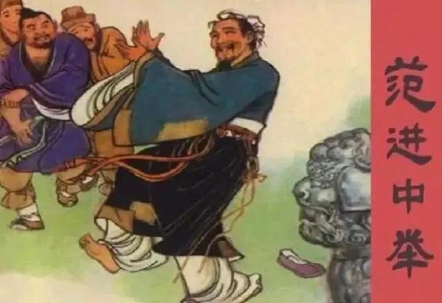 从这短短一句话,就能够看出,范进的地位有多么低。古人云:“皇天不负有心人”,终于有一天范进考上了举人。当这个消息传到范进的耳朵里时,他先是一愣,随即就高兴地疯了起来,教科书对这一幕刻画得淋漓尽致。