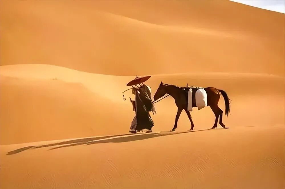 唐僧向西沿着丝绸之路到了凉州,由于没有“通关文牒”这种护照,唐僧只好挑小路走,离开大唐,到了西域。