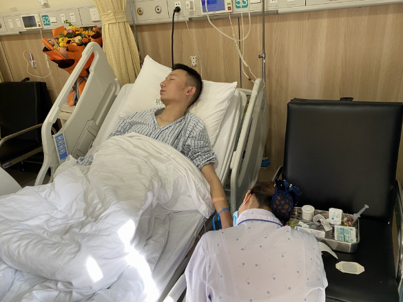 这天将近11点,他迟迟没有入睡。一片黑暗中,他躺在床上拿着手机,播放一个个励志类视频。要不是视频的声音,他能听到心脏带着膈肌强烈的颤动声,感受身体在和疼痛对抗。