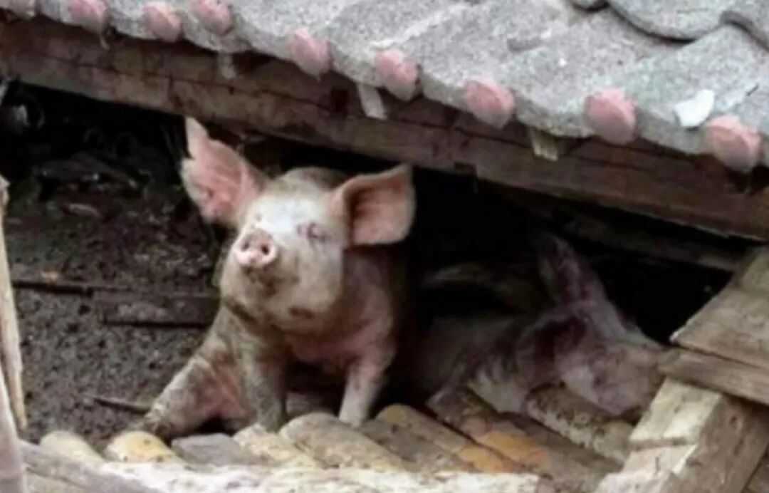 成都彭州市龙门山镇团山村,有一头小猪,被成都军区空军某飞行学院战士刨出来时,还坚强地活着。