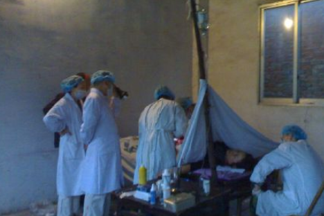 寺院里的禅凳和茶桌拼起来当做产床,剖腹产手术僧人找来手电筒照亮……